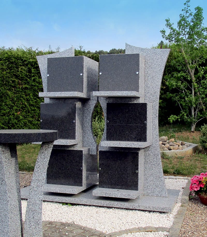 Le columbarium HOMBOURG, véritable chef-d’œuvre d’inspiration monolithique, se distingue par son design épuré et son empreinte au sol minimaliste. Idéal pour les espaces restreints, il répond parfaitement aux besoins des collectivités et des particuliers à la recherche d’une solution pratique et esthétique pour le dépôt des urnes funéraires.