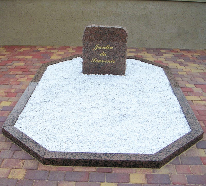 Dans notre gamme standard ou sur mesure, nous vous proposons des jardins du souvenir pensés pour sublimer vos espaces publics ou privés. Ils sont adaptés aux besoins des collectivités et des particuliers en quête d’un espace dédié à la dispersion des cendres. Pour un aménagement optimal, cette zone peut être agrémentée d’un puits d’enfouissement des cendres, permettant un hommage respectueux et intime.